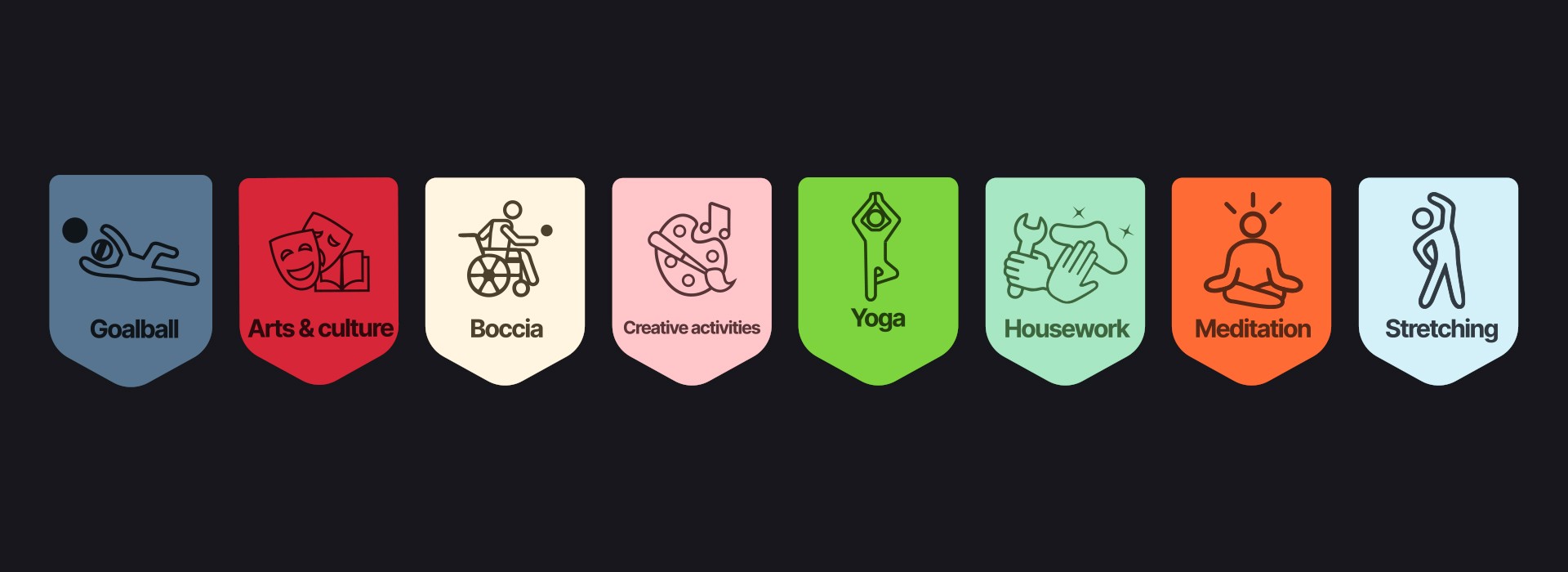 Design of a set of icons for new activities within the SPART application. Every detail was carefully crafted to be both intuitive and visually impactful, ensuring a smooth and clear user experience.